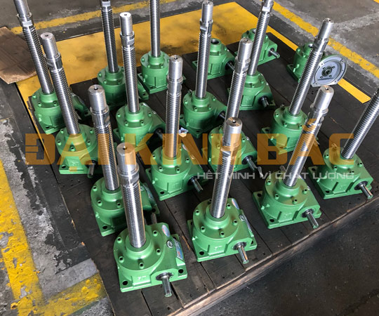 Khi hoạt động trục hành trình sẽ quay và làm đai ốc đi chuyển lên trên hoặc xuống dưới, đường kính trục thanh vít me có kích thước chuẩn đi kèm theo size của từng hộp số và lực nâng khác nhau.