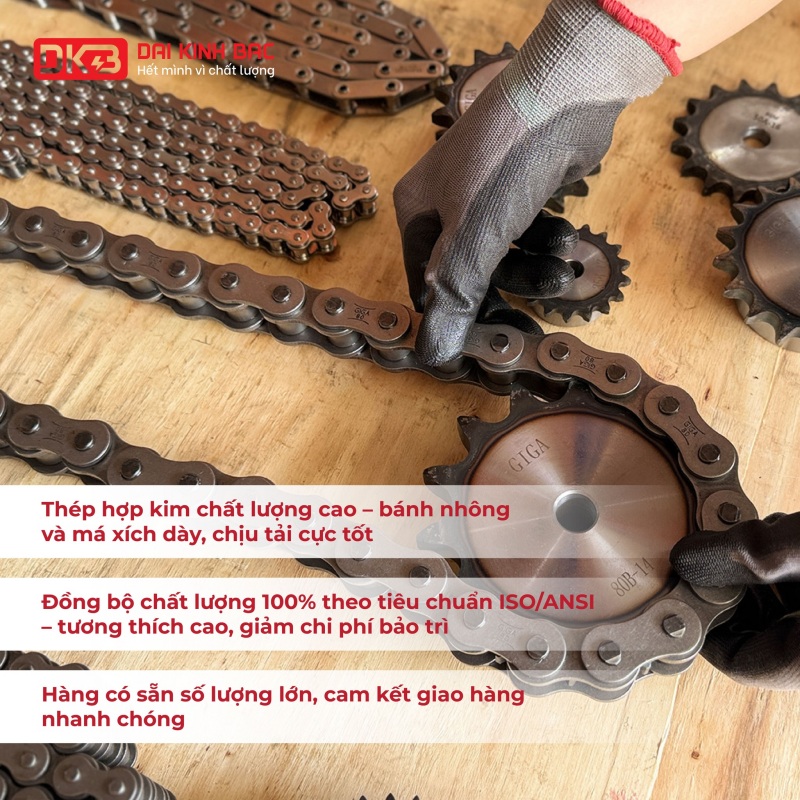 Sự kết hợp giữa nhông xích và motor giảm tốc tạo nên một hệ thống truyền động mạnh mẽ, linh hoạt và hiệu quả. Đại Kinh Bắc cam kết mang đến những sản phẩm chất lượng nhất, giúp doanh nghiệp của bạn: