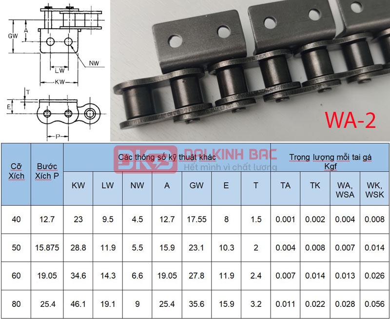 6. Đại Kinh bắc là đơn vị hàng đầu chuyên phân phối các dòng Xích tai gá 2 lỗ 1 bên A2 – Bước tiêu chuẩn tại Việt Nam: