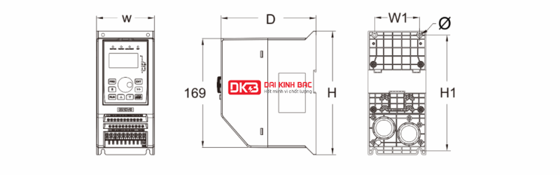 Về kích thước, biến tần SD600 có thiết kế nhỏ gọn, phù hợp lắp trong tủ điện dân dụng và công nghiệp nhỏ. Khi lắp đặt, cần đảm bảo khoảng cách tản nhiệt phía trên và dưới để thiết bị hoạt động ổn định lâu dài.