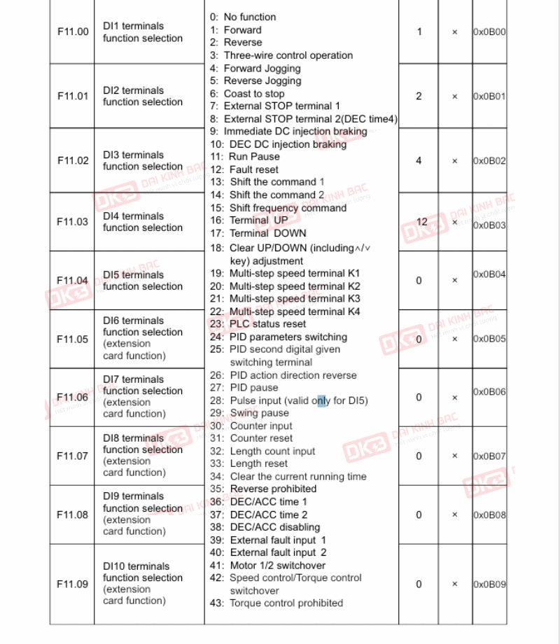 - Chế độ điều khiển: V/F và có thể hỗ trợ vector cơ bản
