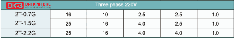 - Nguồn cấp: 3 pha 220V/ 1pha 220V