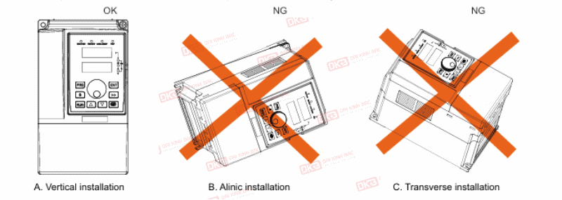 - Điều quan trọng nhất cần lưu ý là phải lắp biến tần theo phương thẳng đứng: