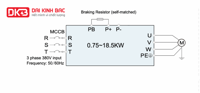 - Tích hợp sẵn DC Braking (hãm DC) giúp dừng động cơ nhanh, an toàn và chính xác