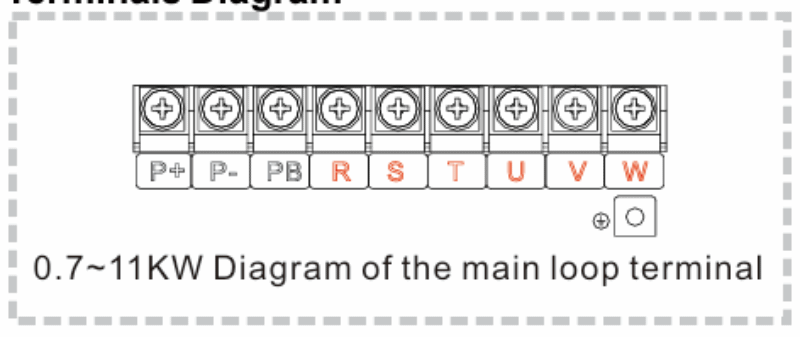 - Nguồn 3 pha đấu vào các chân R, S, T